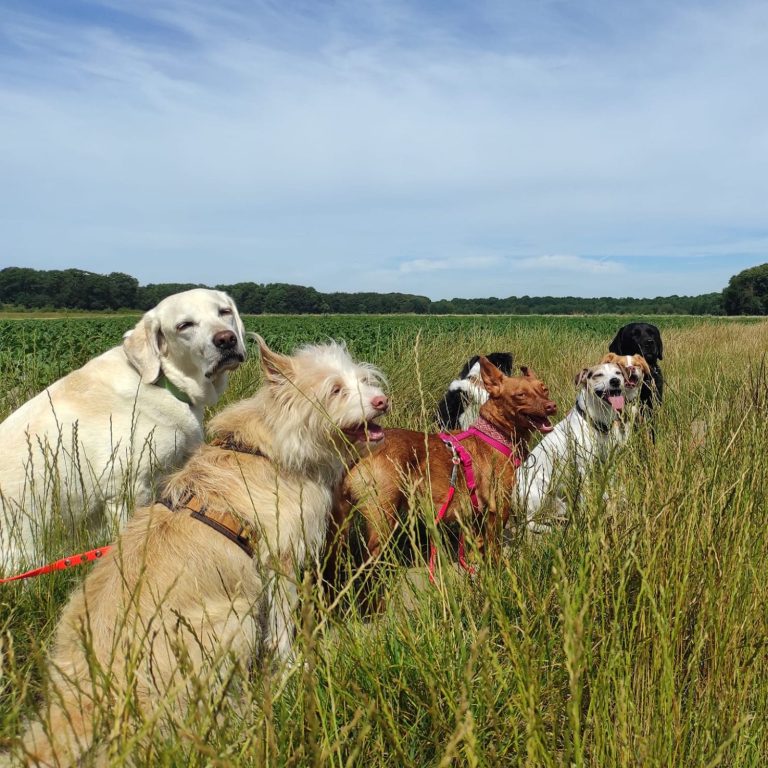 In einer Gruppe von max. 6 Hunden kann Ihr Hund von Montags bis Freitags mindestens eine Stunde Auslauf und Spaß mit Artgenossen in Feld und Wald genießen.